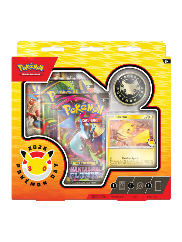 Świętuj Pokémon Day z wyjątkową kartą promo foil ze specjalnym 'stemplem’, metaliczną monetą przedstawiającą logo 30-stej rocznicy Pokémon i 3 paczkami boosterów z różnych dodatków Pokémon TCG.